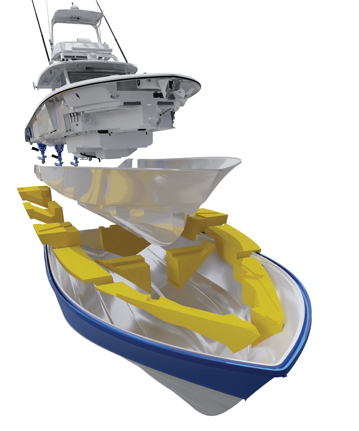 RAMCAP® stands for Rapid Molded Core Assembly Process, and it’s the heart of every Everglades hull. It’s a patented process that uses a high-density foam core pre-molded to precisely fit between the boat’s hull and liner. The result is a hull that is solid, quiet, and incredibly buoyant—even in extreme conditions.
